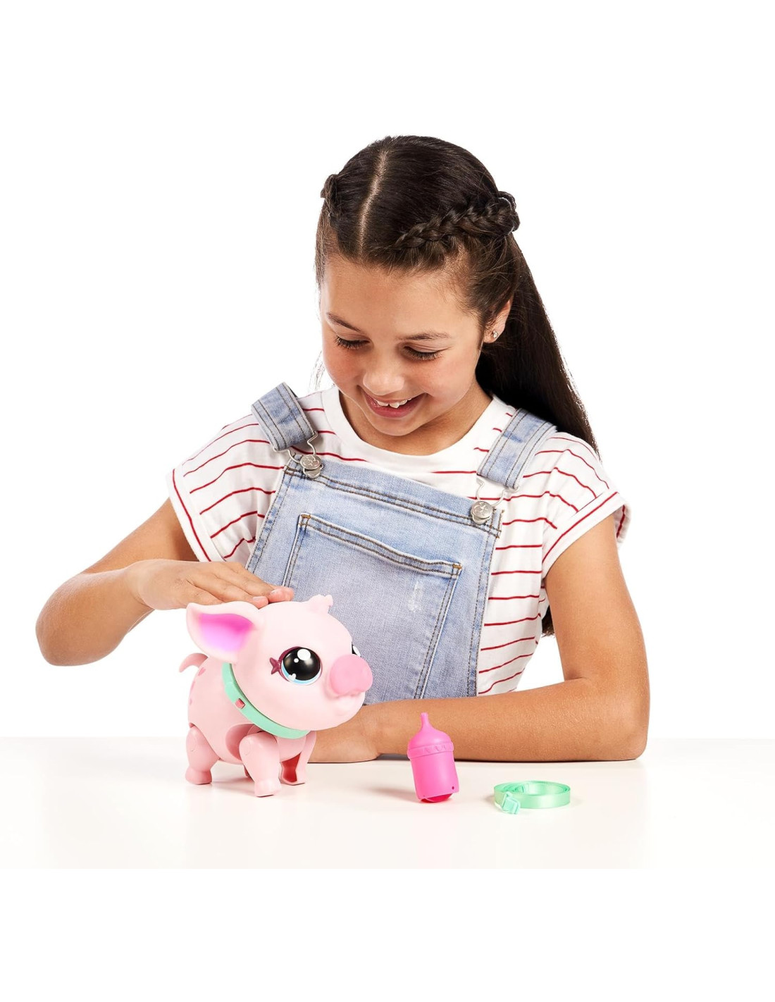 Piggly si muove e fa versi proprio come un vero maialino. Porta la maialina a spasso con il guinzaglio o guardala scatenarsi sulle note della sua musica preferita. Piggly emette tanti suoni dolci e divertenti: fa l'occhiolino, si abbuffa, ridacchia, fa i ruttini, annusa, starnutisce e, dopo la pappa... le scappa anche una puzzetta!