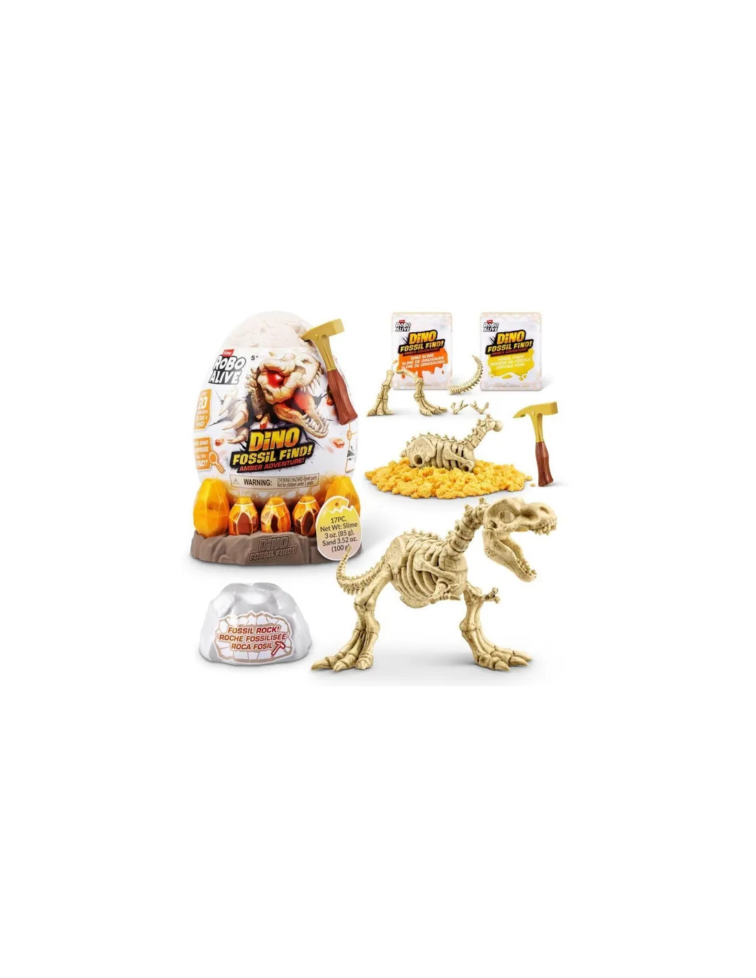 Questo set dà vita all'esplorazione dei dinosauri: dopo aver aperto l'uovo, i giovani esploratori dai tre anni in su devono scavare tra rocce, sabbia e melma per trovare un fossile di dinosauro. Poi devono assemblare il fossile, che prende vita con un ruggito e occhi luminosi. Di quale dinosauro si tratta?