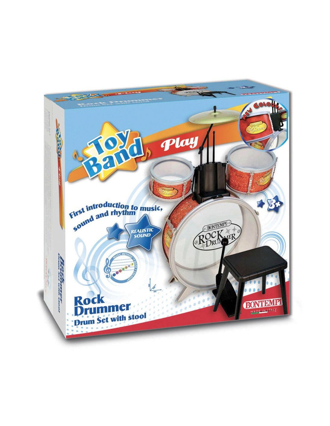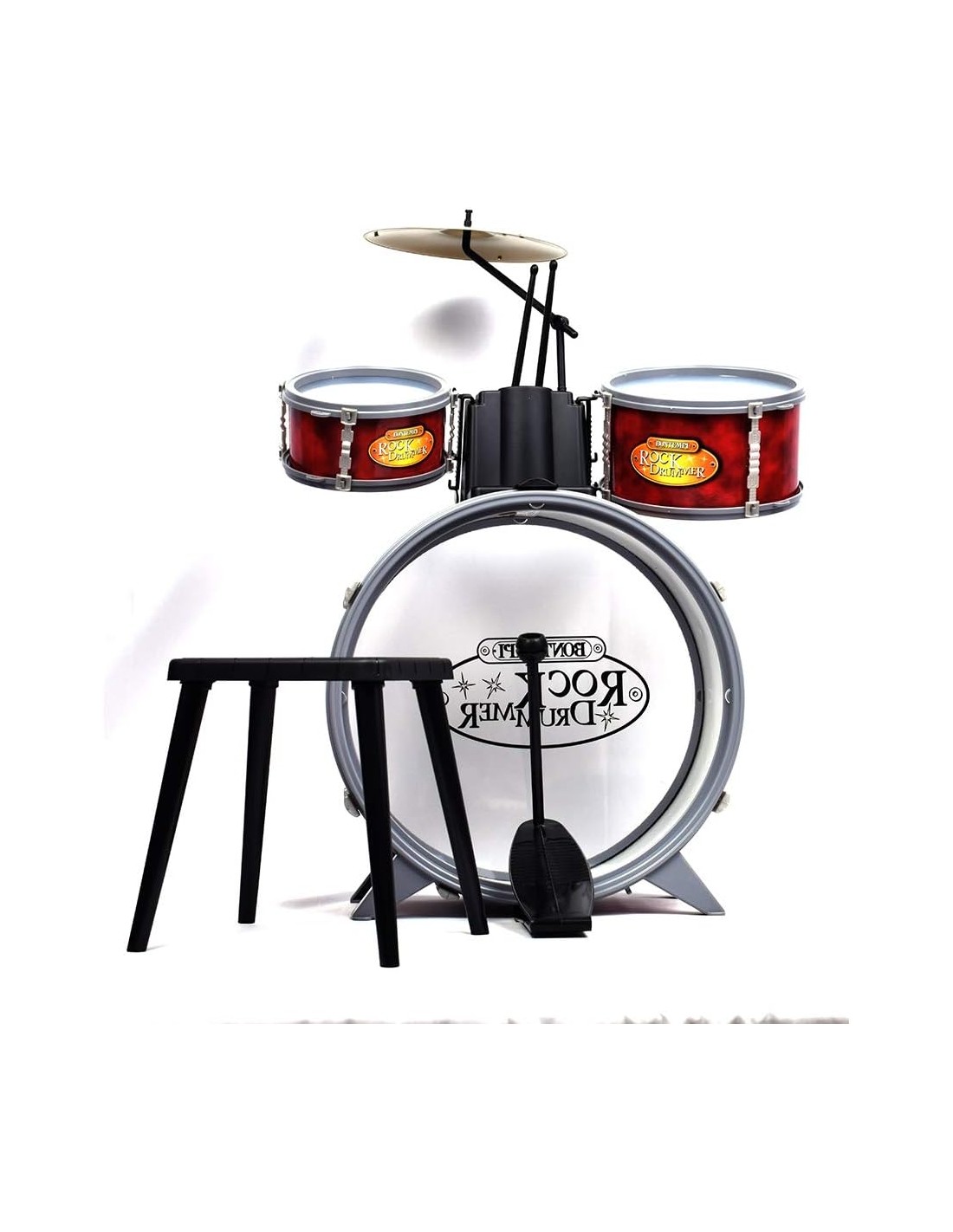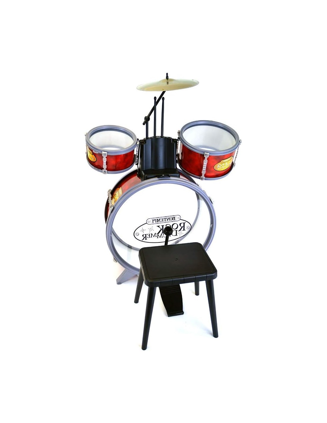 Bontempi Batteria classica 4 elementi con sgabello e 2 Bacchette