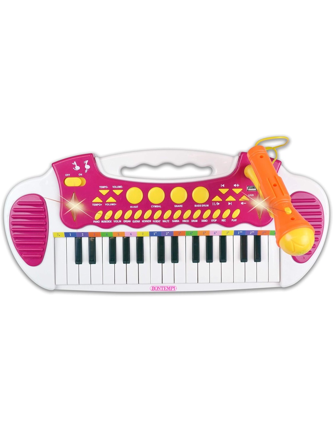 5 suoni; 5 ritmi; 22 brani preregistrati Funzione di registrazione e riascolto delle melodie Microfono per la voce con posizione regolabile Magico spettacolo di luci Presa USB per Flash Drive
