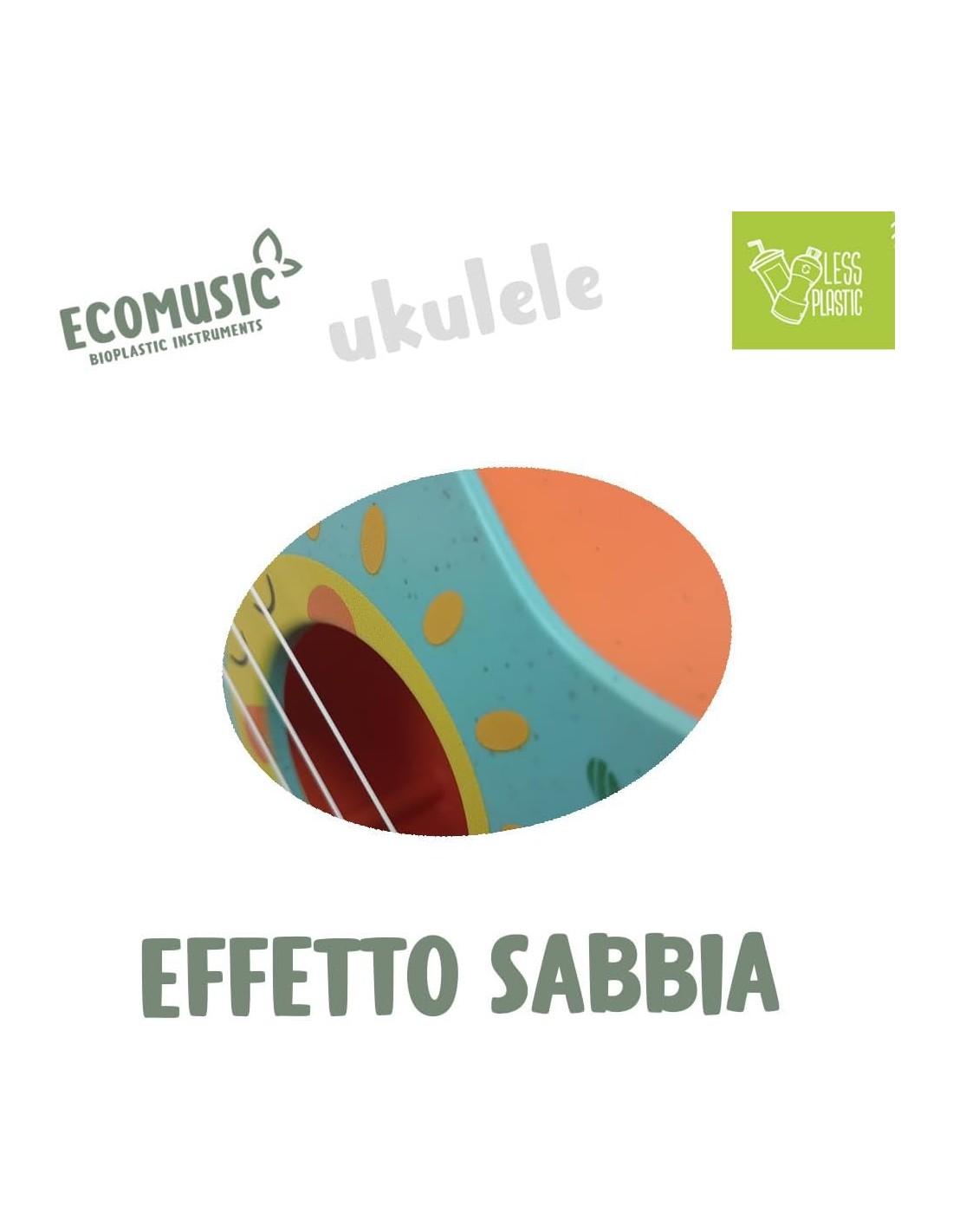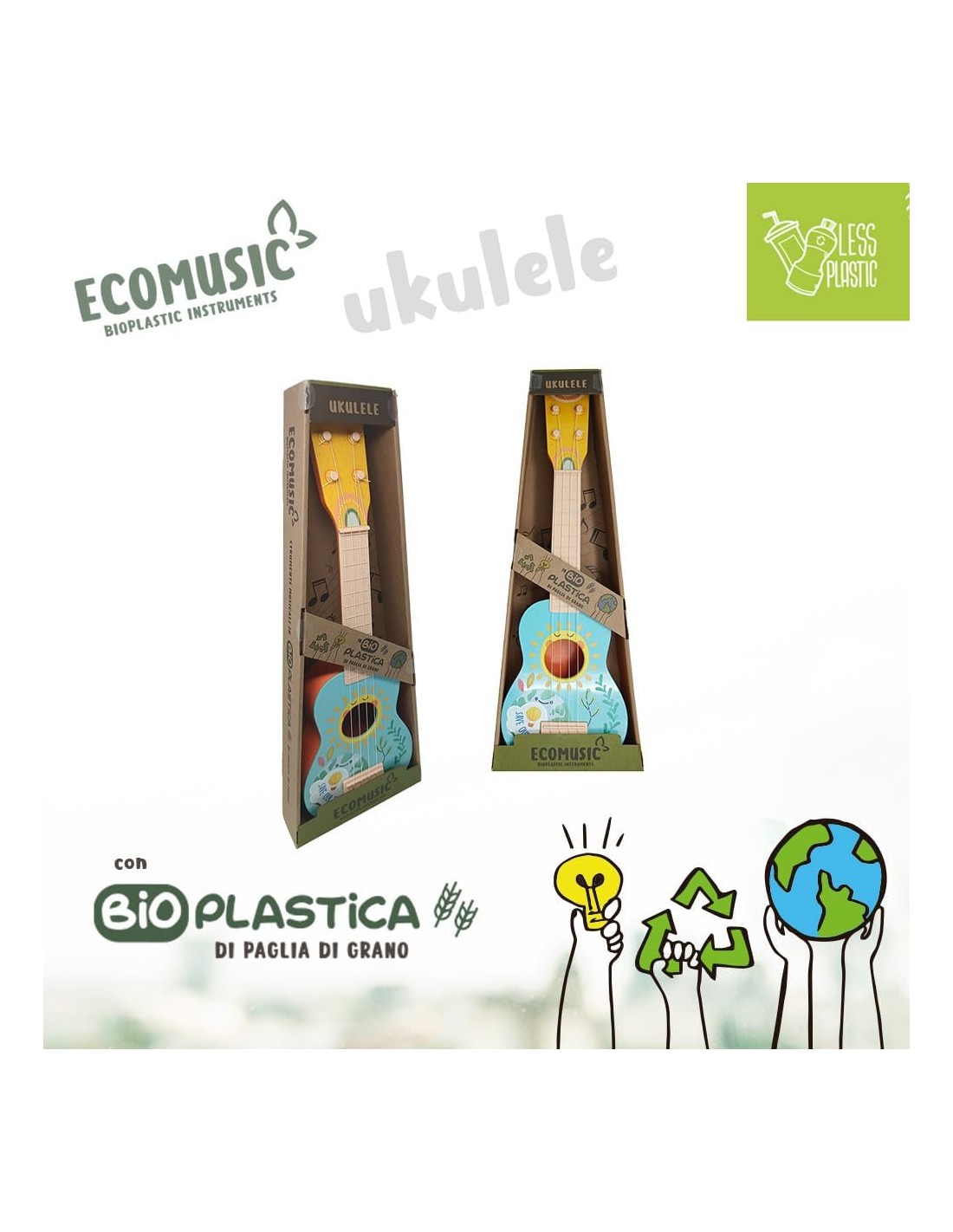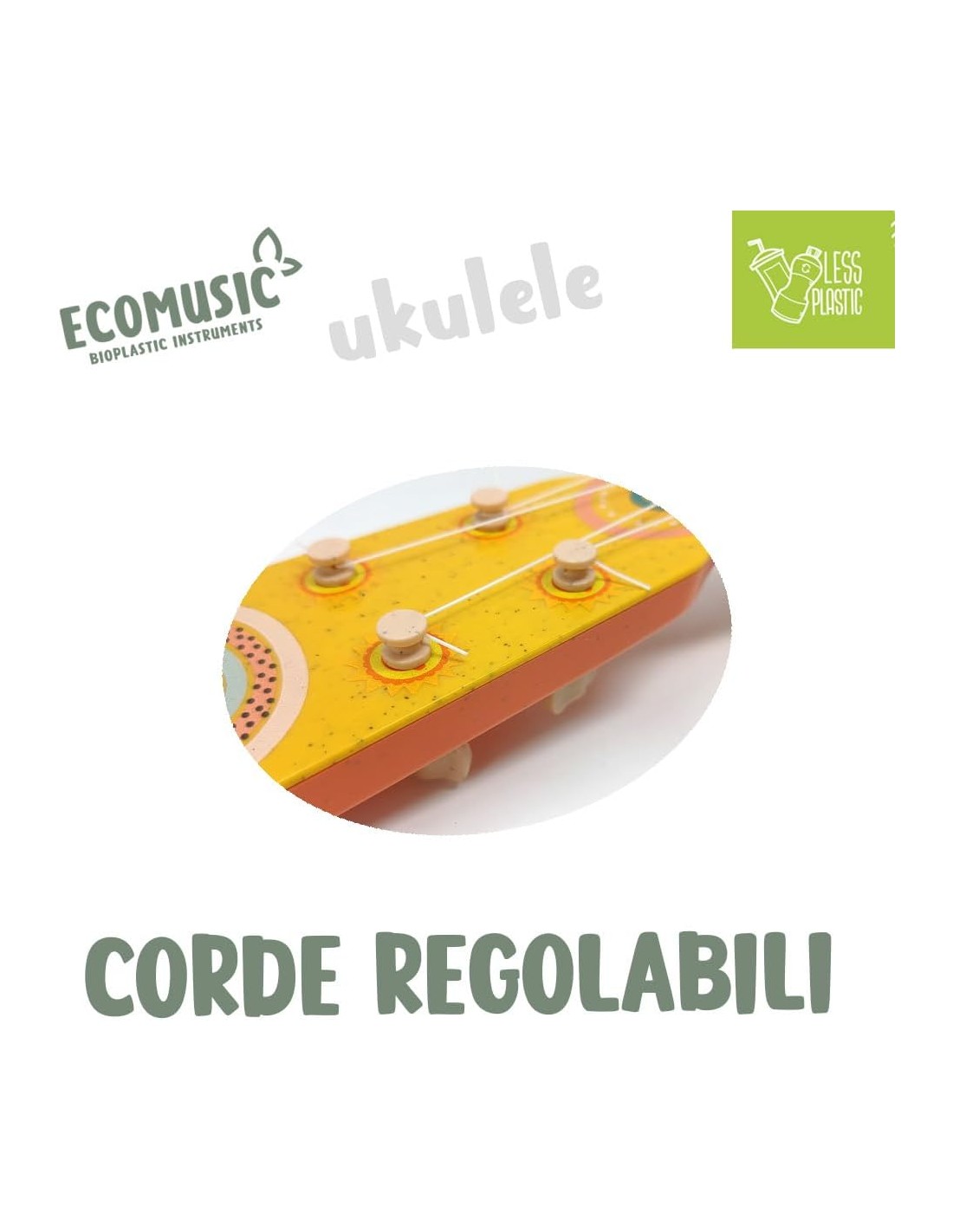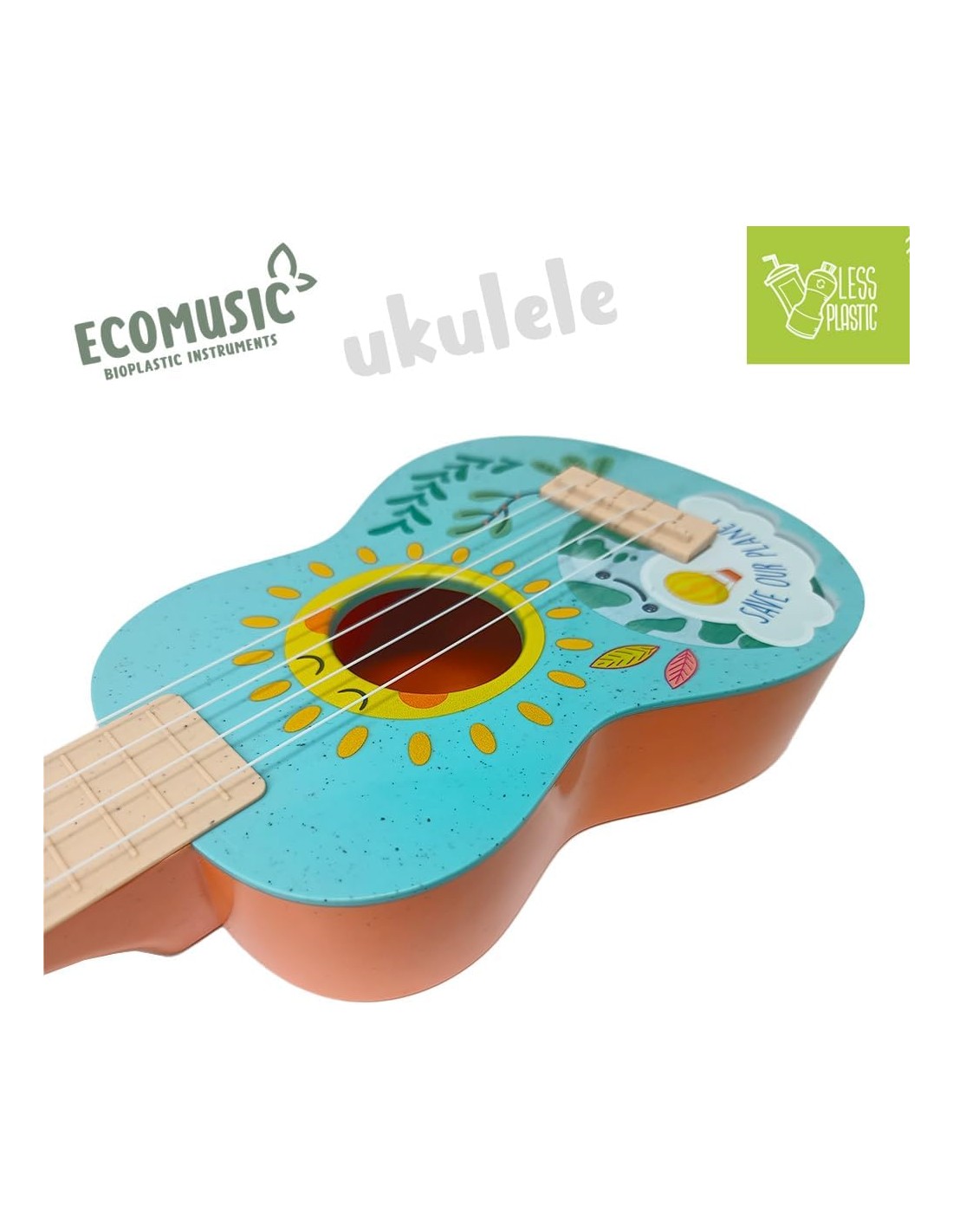 Sport1 Ukulele in bioplastica. Ukulele bambini divertente e sicuro. Strumenti musicali bambini e giochi bambini 1 anno della Linea bio Ecomusic. Giochi musicali e idea regalo. Giocattoli musicali.