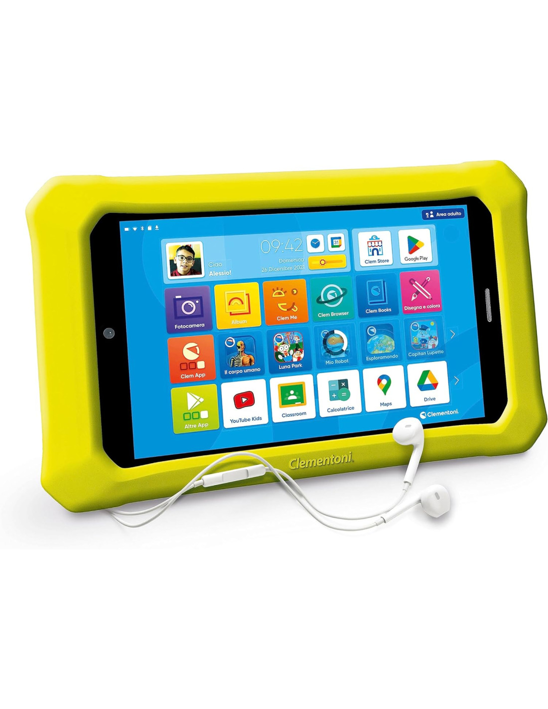 DESCRIZIONE: Il dispositivo consente di scegliere tra due interfacce: area adulto e area bambino. Tante app ed esperienze digitali coinvolgenti e originali, per divertirsi e imparare come Youtube Kids, Google Family Link, Google Classroom, Clem Me per divertirsi a creare degli avatar e Clem App