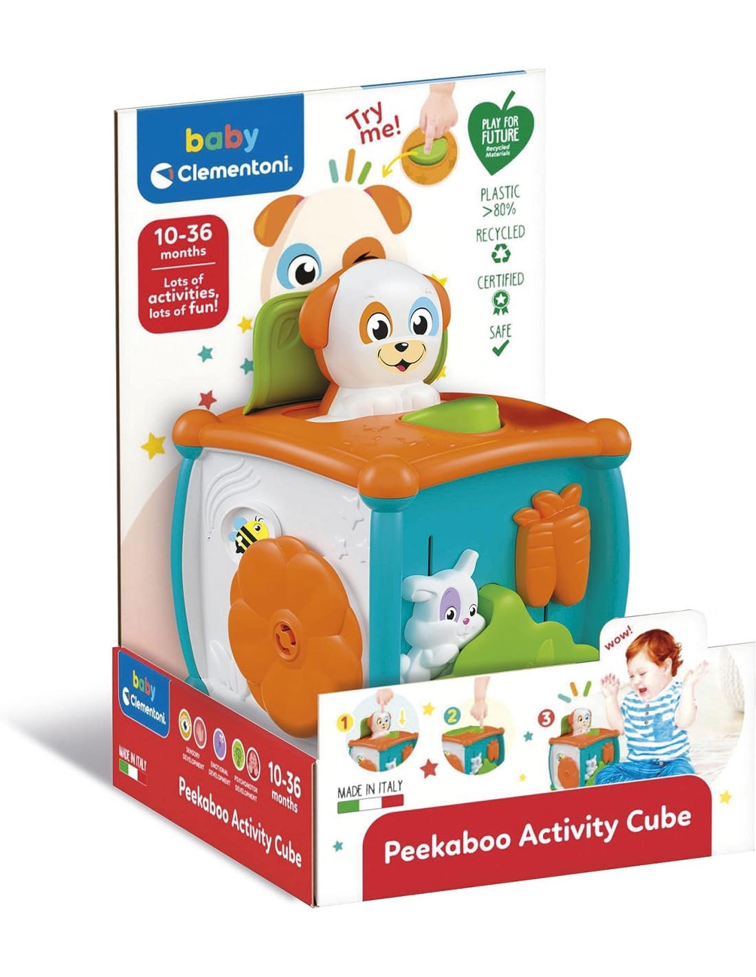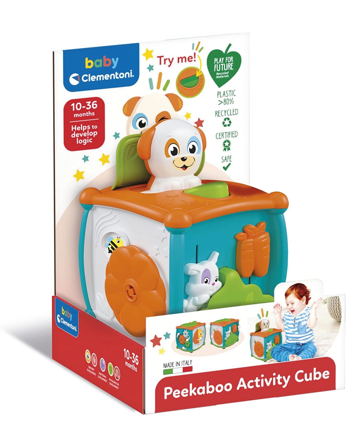 Clementoni - 17672 - Cubo attività - Gioco Bambini 10 Mesi, Gioco cucù, sviluppa capacità manuali e logiche - cubo multiattività Ecologico, in plastica Riciclata, Made in Italy Visita lo Store di Clementoni