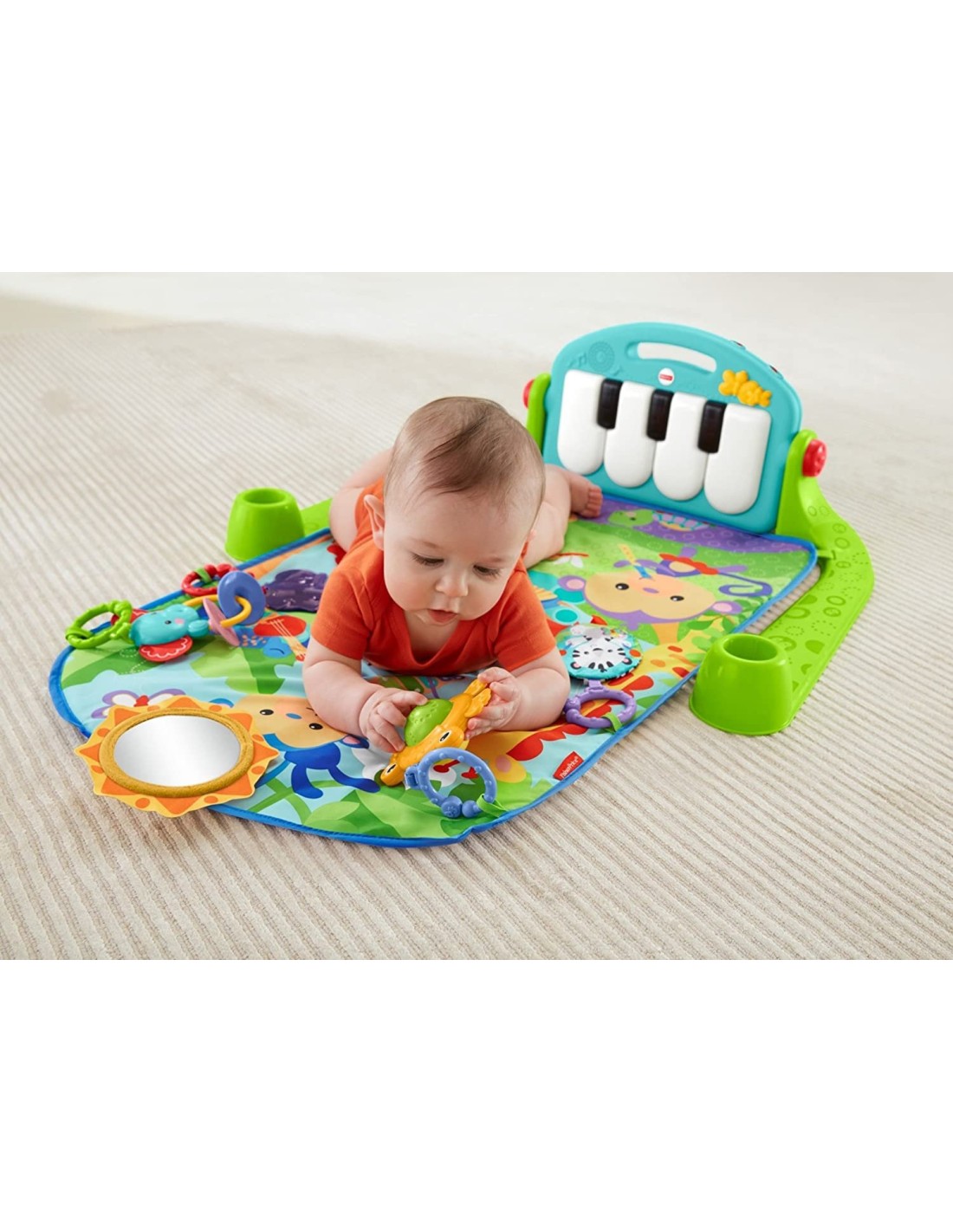 Un giocattolo innovativo che combina lil divertimento della classica palestrina per il bebè con un piano che il piccolo, potrà suonare da 3 posizioni differenti: Modalità¡ gioco supino, il bebè può dare calcetti al piano, mentre osserva i giochi dell'arco. Disteso sul pancino, il bebè gioca con i giocattolini dell'arco, che si possono inclinare fino al suolo, e può guardarsi allo specchio. Seduto: suona il piano con le manine, circondato dai giocattoli dell'arco. Il piano possiede 2 opzioni: musica di breve durata, con note seguite da frasi musicali, e musica di lunga durata, con 15 minuti di musica continua. Le luci del piano si illuminano e si spegnono. Raccomandabile per bebè appena nati. Funziona con 3 pile AA incluse.