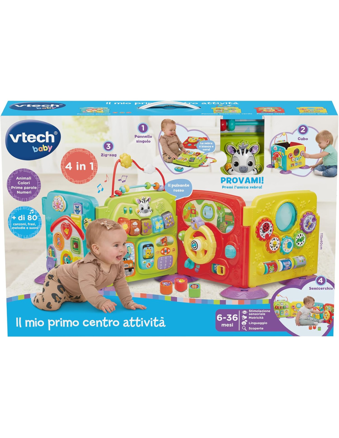 VTech Il Mio Primo Centro Attività, Centro Attività 3 in 1 con 2 Canzoni e 10 Melodie, Sviluppo Motricità Fine, Spegnimento Automatico, Lingua Italiana, Batterie Incluse, 6-36 Mesi