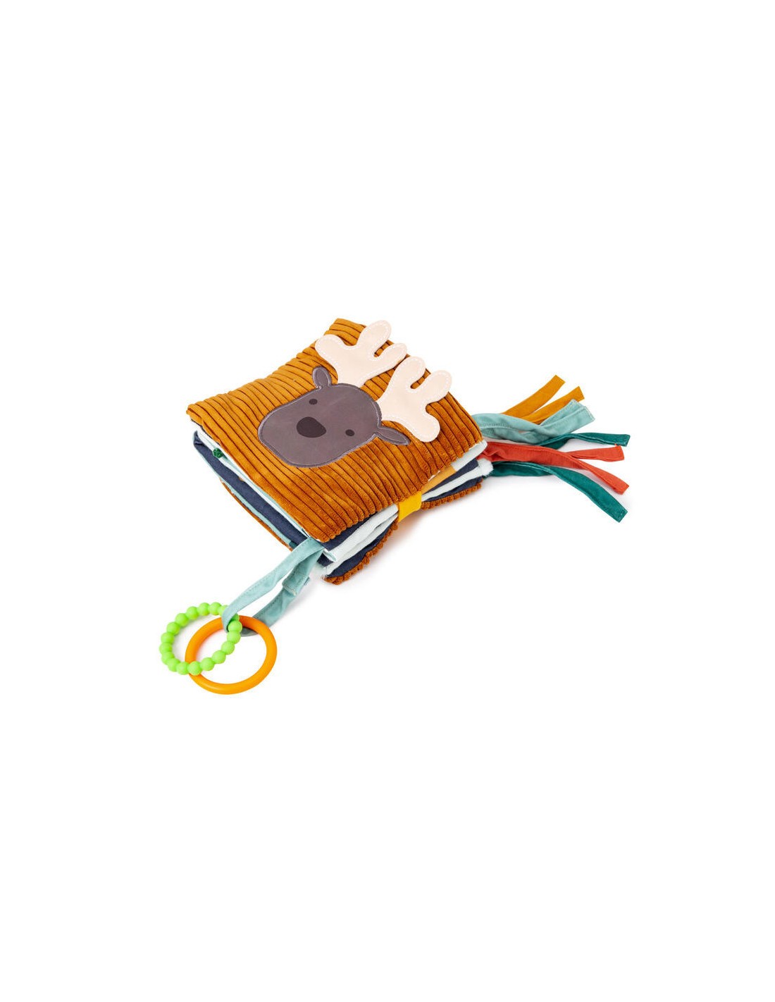 Con un lato bicolore per la prima età, ideale quando il bambino vede solo contrasti di colore, e un lato pieno di piccole sorprese nascoste.
