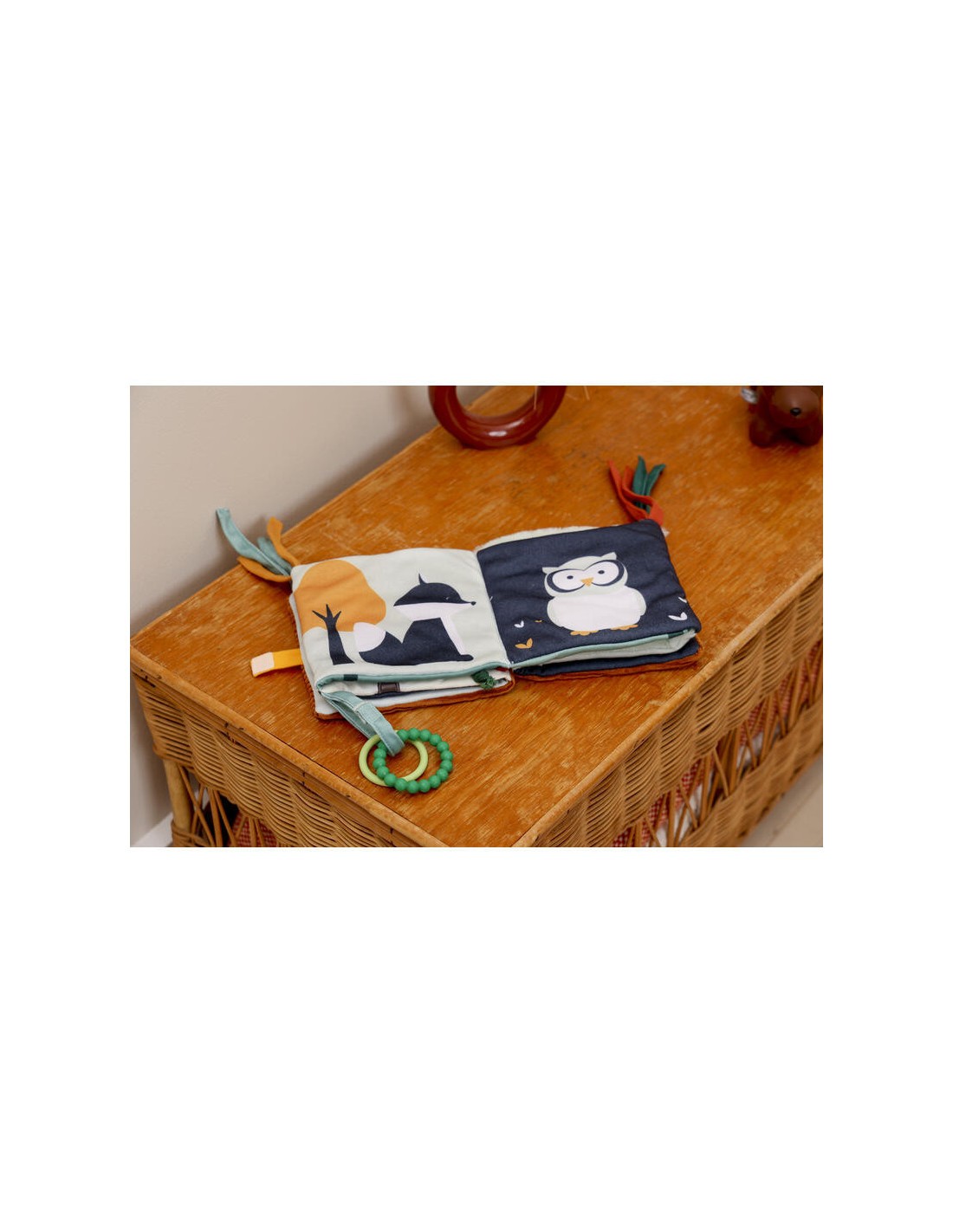 Aperto completamente può essere legato alle sbarre del letto del bambino.