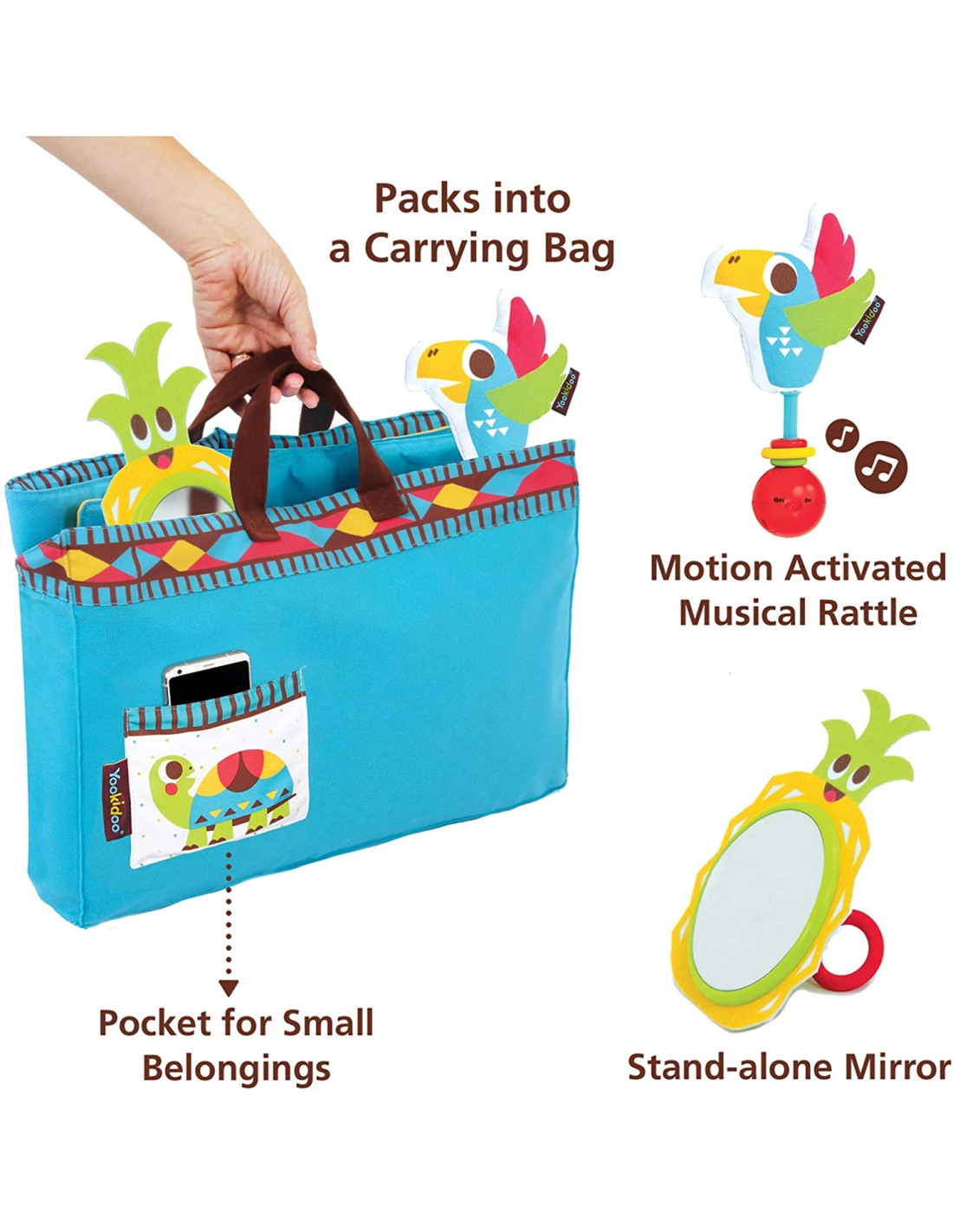 Specchio ananas con sonaglio e massaggiagengive – grande specchio da appoggio con sonaglio e massaggiagengive per neonati. 3 Playial Peek - a - Boo Crinkly Bandiere che stimolano il senso del tocco dei bambini.