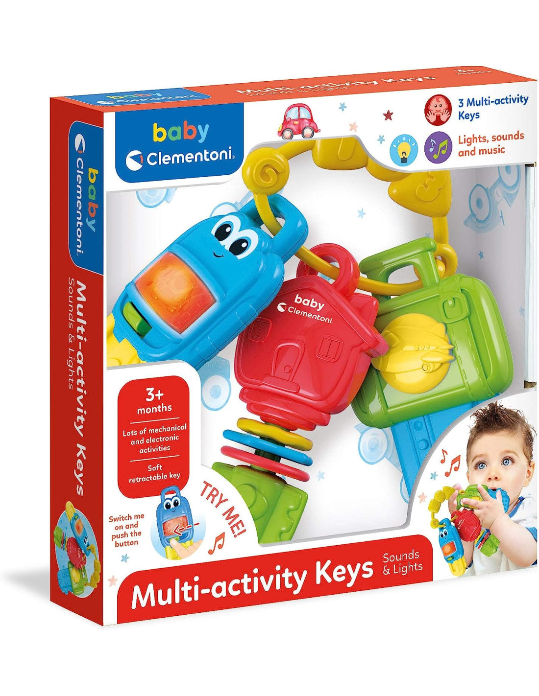 Tre simpatiche chiavi elettroniche ricche di divertenti effetti luminosi e sonori. 3 giochi in 1: una chiave elettronica con luci e suoni, una chiave tric-trac con sonaglini e una chiave morbida richiudibile. Gioco educativo elettronico: stimola la percezione uditiva, tattile e la manualità. Batterie incluse. Ideale a partire dai 3 mesi.