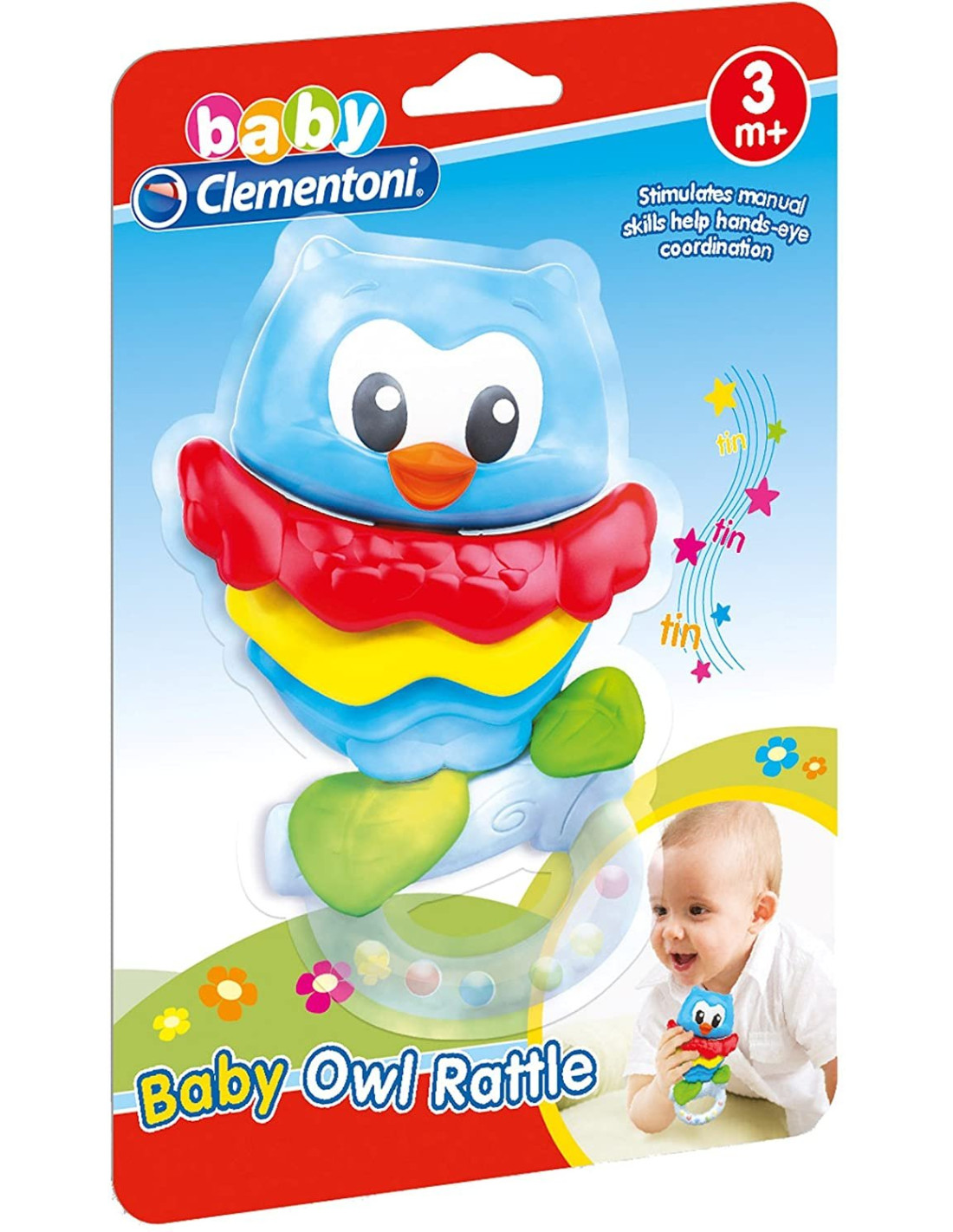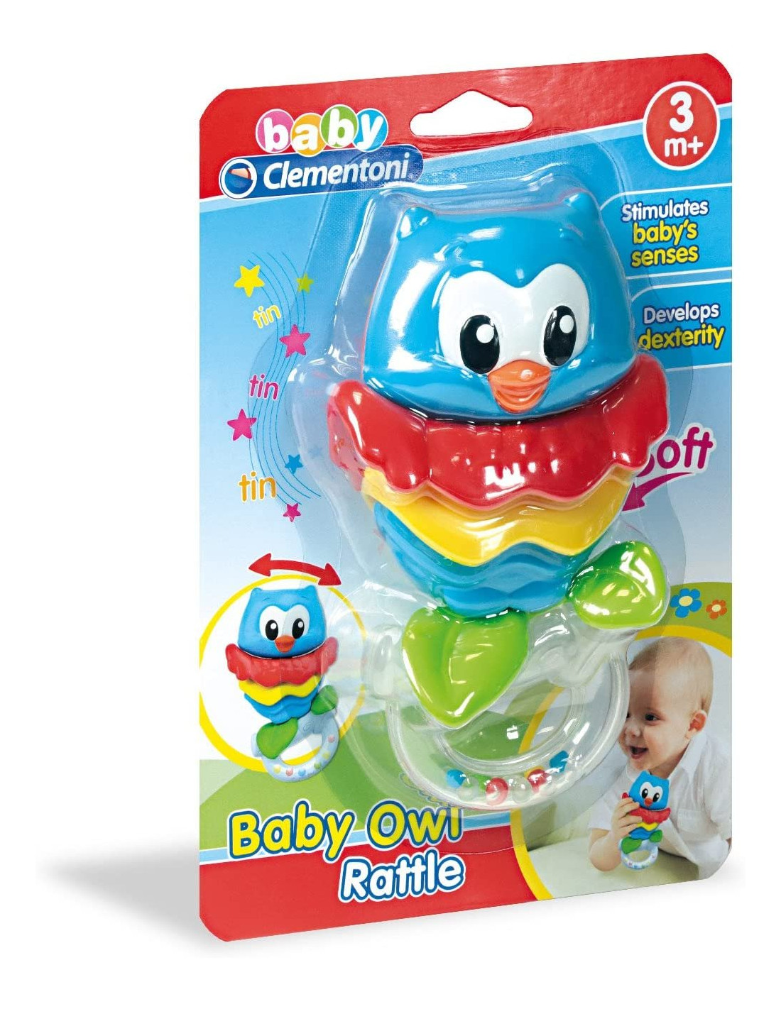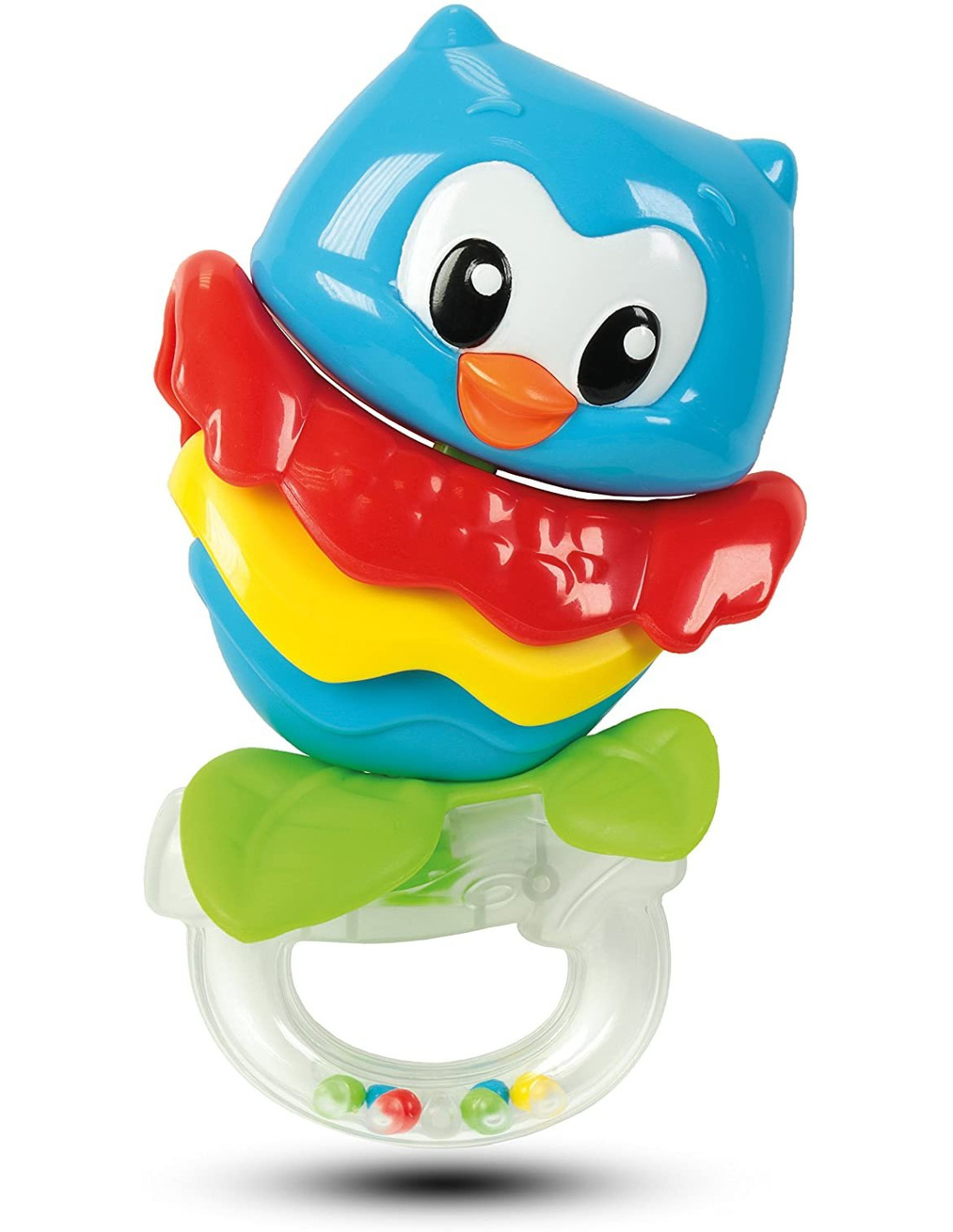 Le ali colorate fungono da maniglia, l'aletta azzurra si muove avanti e indietro e le simpatiche palline nel pancino stimolano la percezione visivo-uditiva e la manualità del bambino. Il pendente in morbida plastica, tutto da mordicchiare, è ideale per la fase della dentizione.