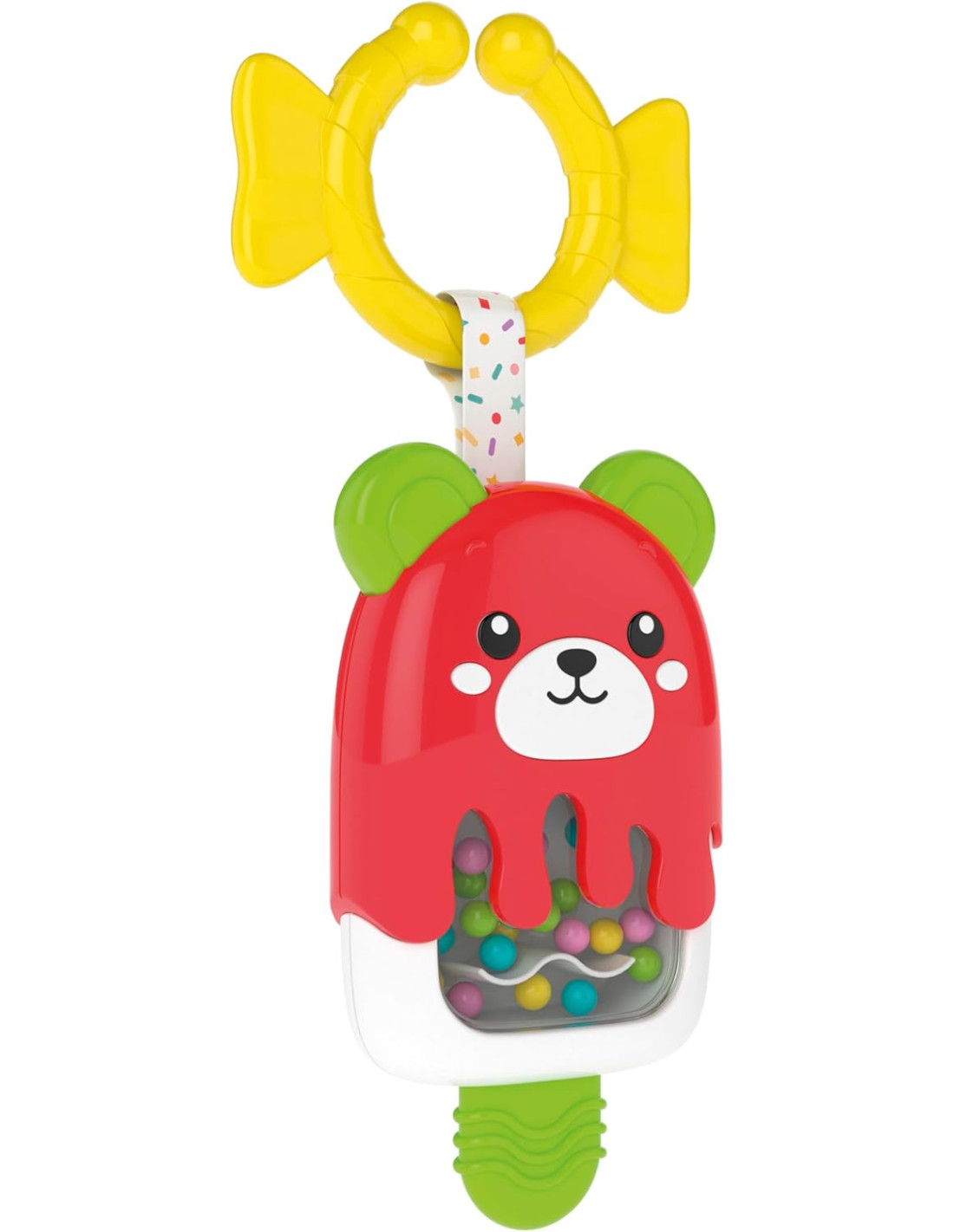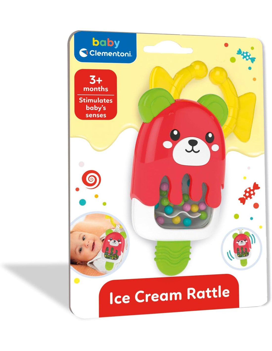 SONAGLINO GELATINO: un colorato sonaglio a forma di gelato che stimola lo sviluppo multisensoriale, grazie alle diverse attività da scoprire, con un comodo pendente per appendere il sonaglino e trasportarlo ovunque