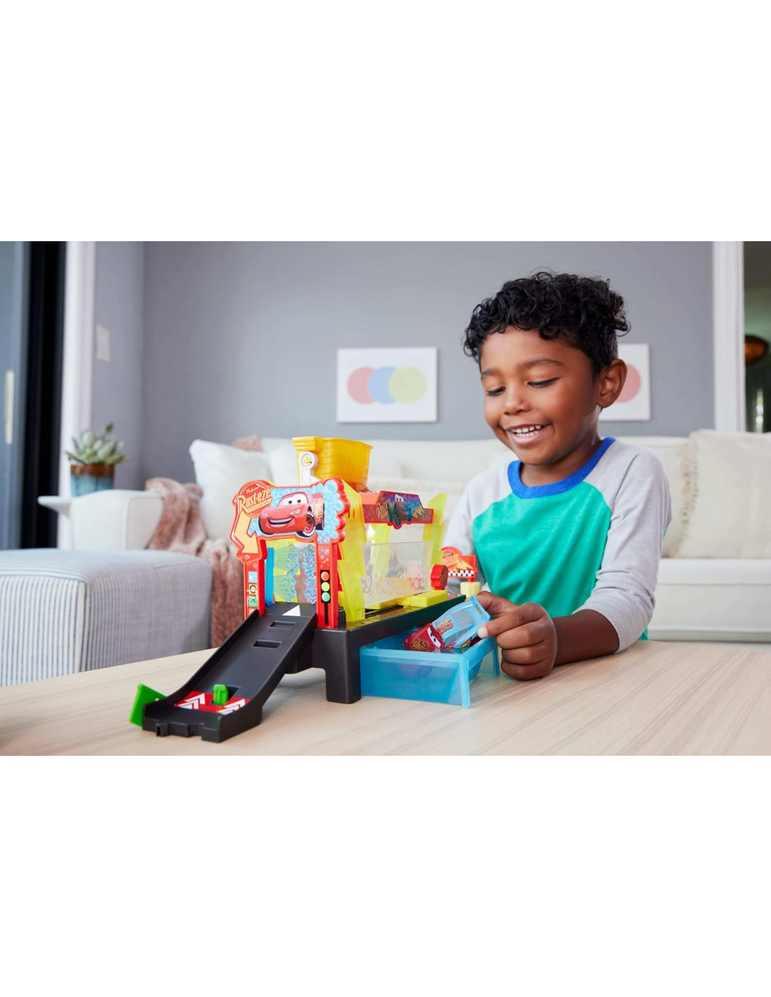 Prepara Saetta McQueen per la prossima competizione con il playset Disney Pixar Cars Autolavaggio per la Corsa Cambia Colore!