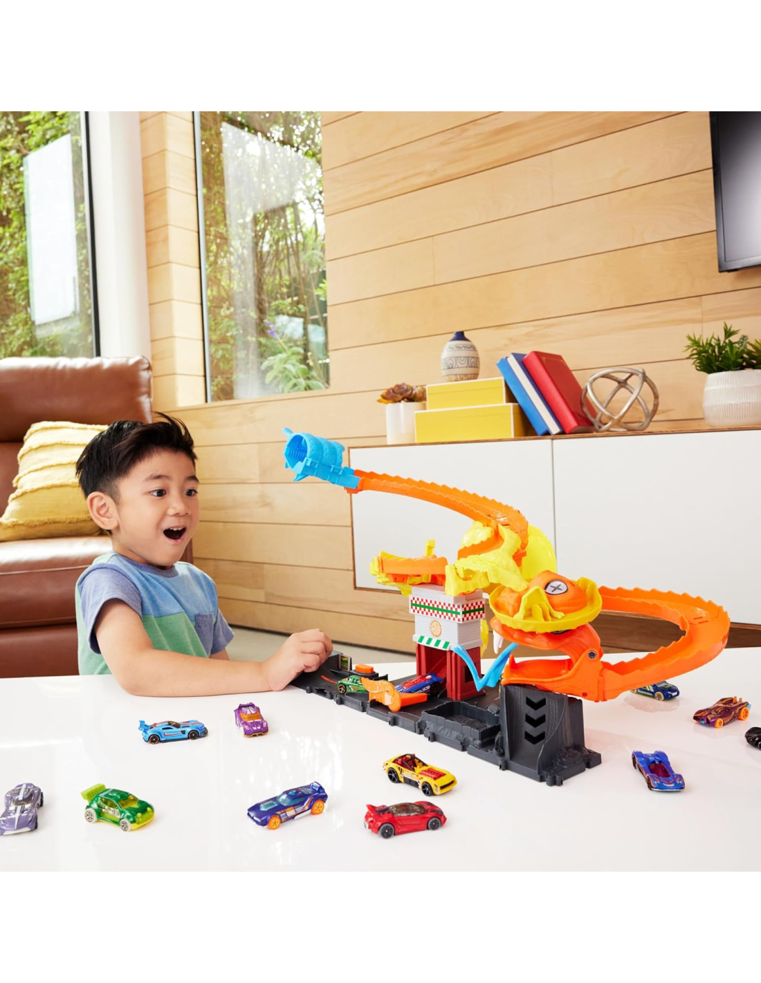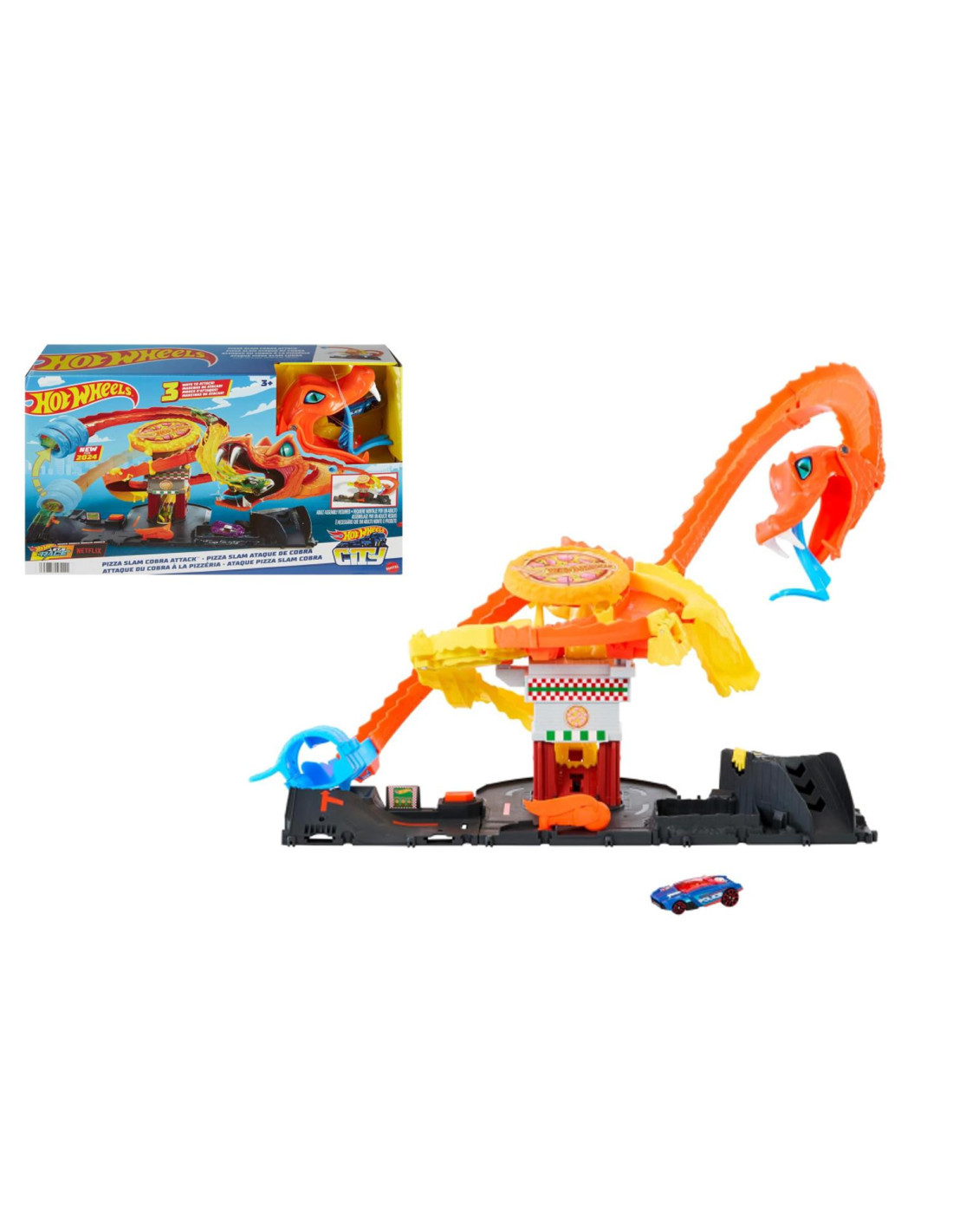 Sfida il cobra che e' riuscito a strisciare nella pizzeria e salva Hot Wheels City! Guida sulla coda del cobra e vedrai quali dei tre percorsi seguira' la macchinina.. Riuscirai a sconfiggere il cobra? Forse finirai nelle fauci della creatura oppure lancerai una pizza in faccia al cobra!