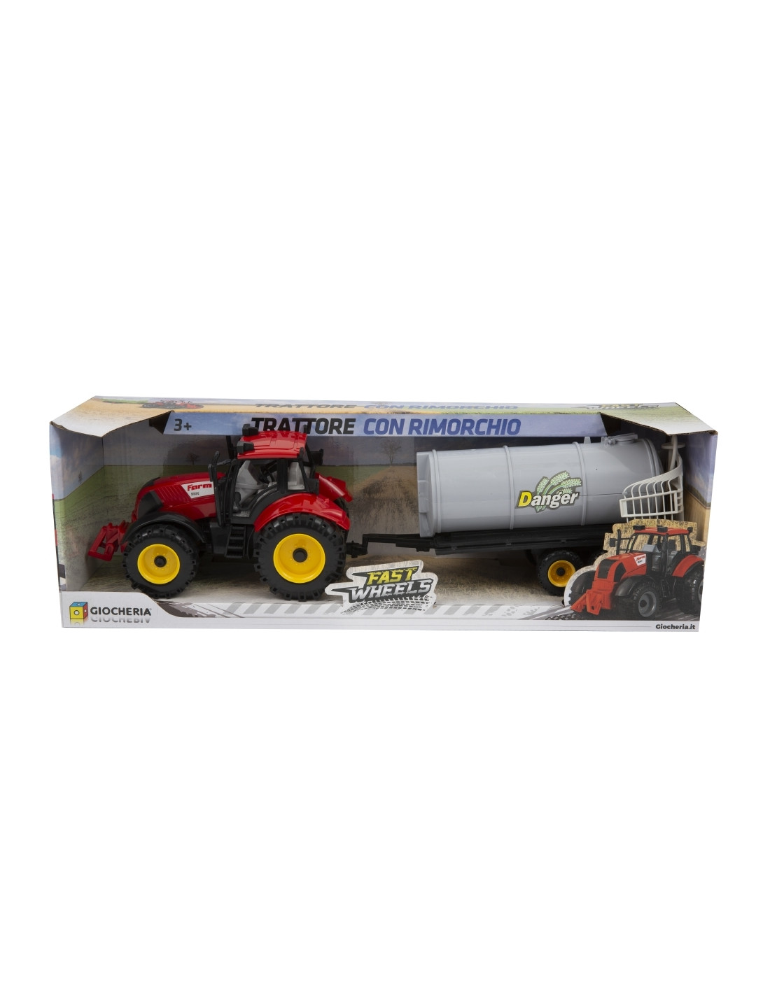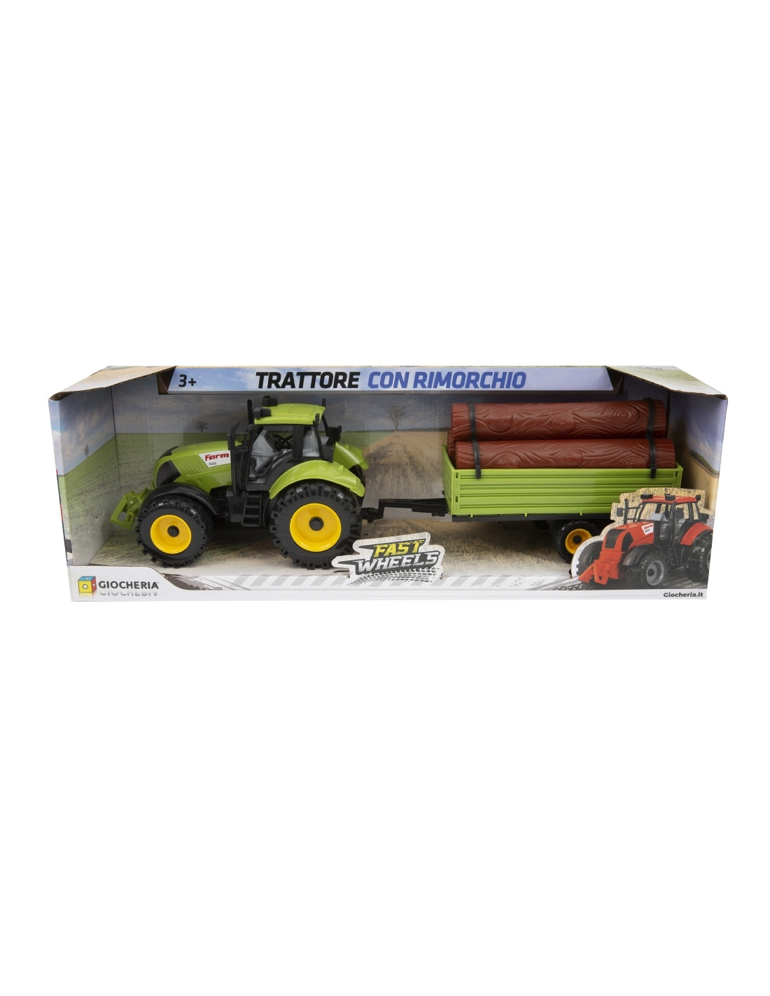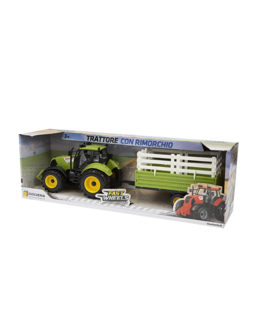 Trattore con rimorchio a ruote libere, con cofano apribile. Disponibile in 4 modelli.