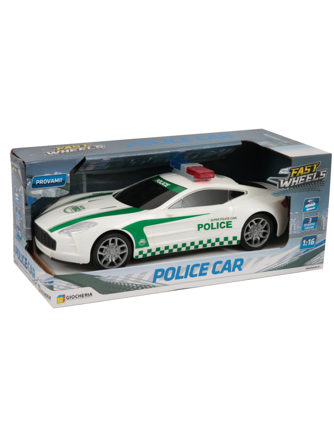 Auto della Polizia con luci e suoni e movimento a frizione, in scala 1:16.