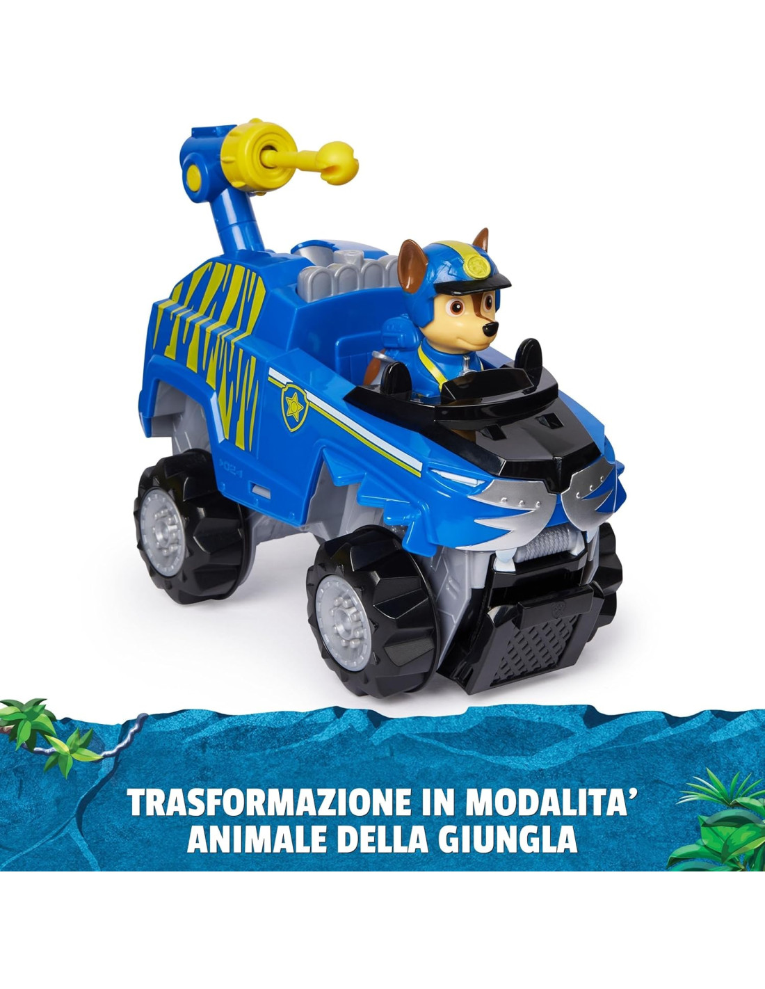 PAW Patrol Jungle Pups, Veicolo Tigre di Chase, veicolo giocattolo con personaggio Chase da collezione, giocattoli per bambini e bambine dai 3 anni in su