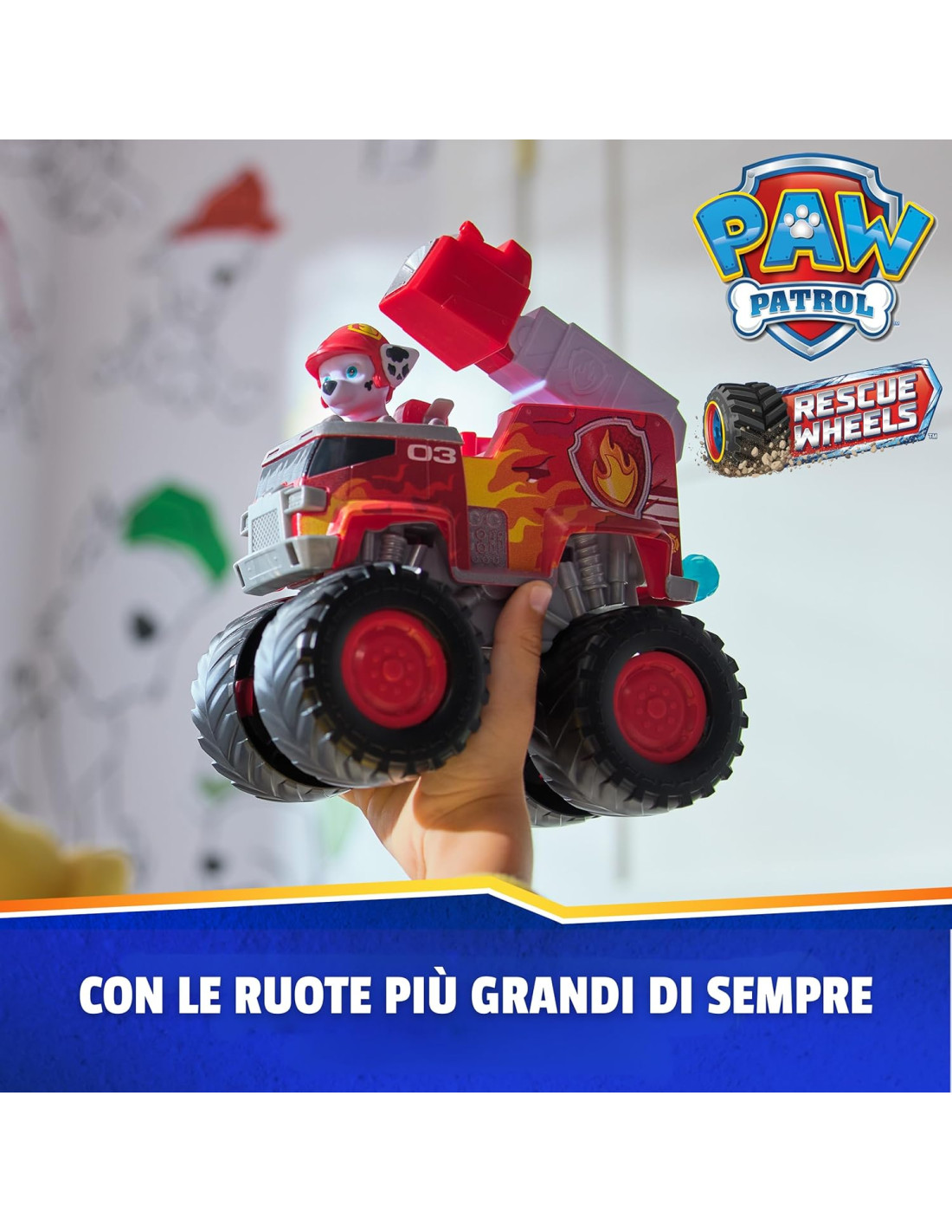 SPIN MASTERCAMION GIOCATTOLO CON RUOTE GROSSE: i camion giocattolo Rescue Wheels presentano lo stile autentico di PAW Patrol e sono dotati di pneumatici giganti da camion, per emozionanti avventure fuoristrada di fantasia, proprio come accade nel cartone