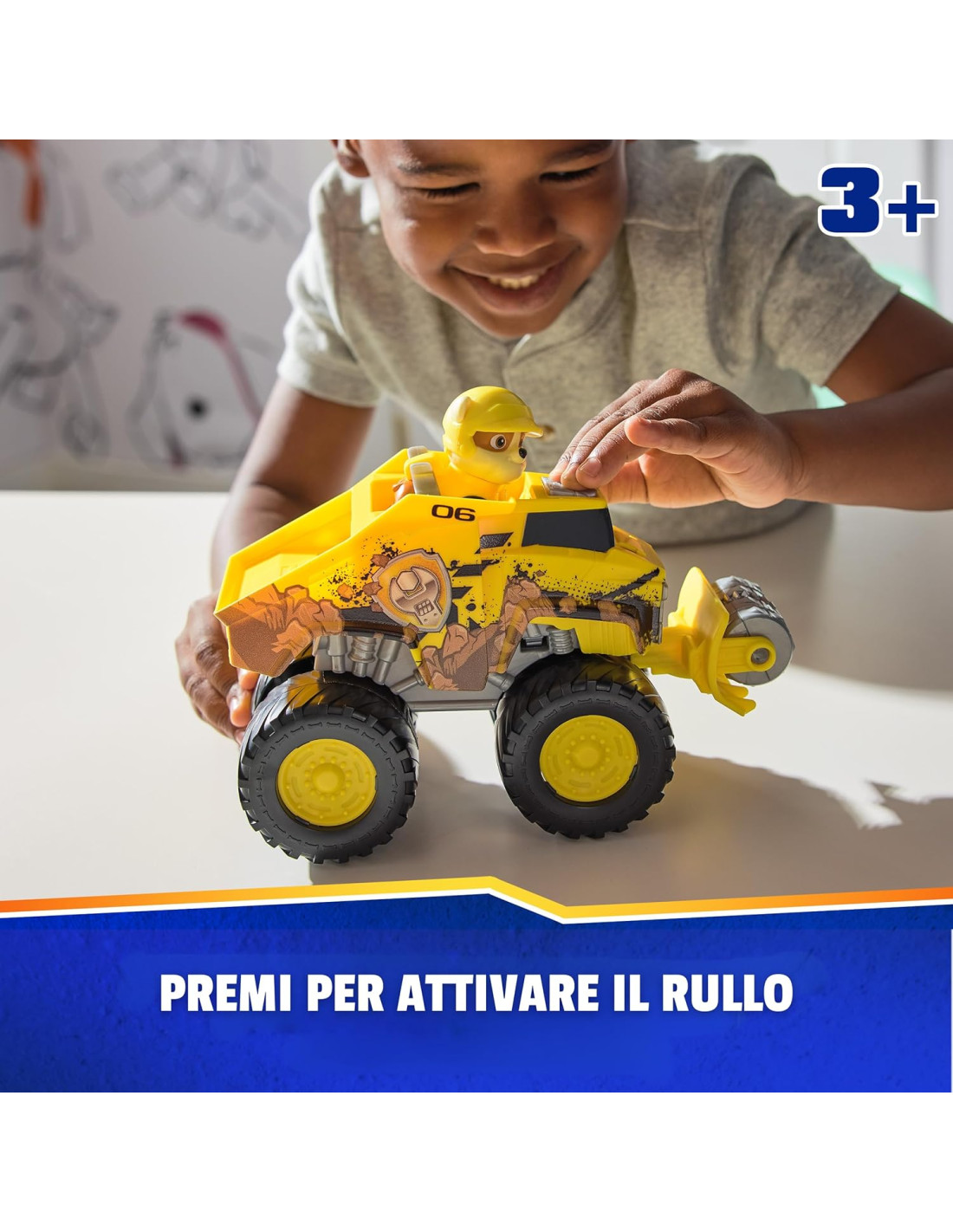 TRASFORMAZIONE DEL VEICOLO: il bulldozer di Rubble con ruote giganti offre un'entusiasmante trasformazione. Premi il pulsante sul tetto per estrarre il rullo spianatore a molla, poi sfreccia in azione