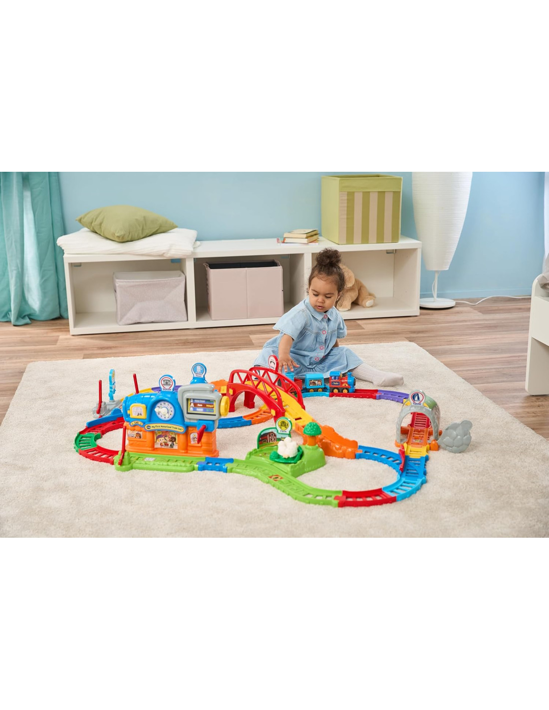 VTech Vroom Vroom Go - Avventure in Treno, Pista Trenino Elettrico con Ostacoli, Inclusa Locomotiva Motorizzata e Vagoni, 6 Zone Magiche, Lingua Italiana