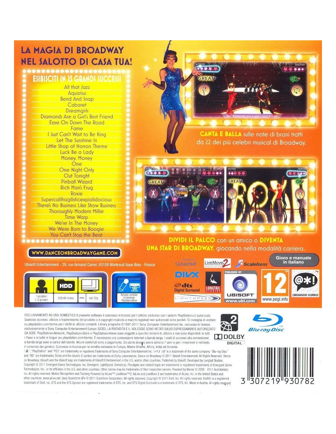 Canta, balla e recita con i migliori brani di Broadway, dai classici di sempre fino alle canzoni più recenti, per provare tutta la magia di Broadway nel tuo soggiorno! Caratteristiche: Prova l'emozione di essere sul palco sotto la luce dei riflettori! Balla, recita ed esegui tutte le mosse e le coreografie dei migliori musical di Broadway con il tuo telecomando Wii. Canta seguendo i testi sullo schermo. Esibisciti sul palco e raccogli gli elogi del pubblico e della stampa, che non ti faranno mancare standing ovation, applausi e critiche positive. Prova tutto il meglio di Broadway 20 tra i migliori brani presi dai più celebri spettacoli di Broadway. Vere coreografie di Broadway caratterizzate da mosse di ballo specifiche. Condividi un'esperienza davvero unica con gli amici! Gioca con 4 amici: condividi il divertimento e i momenti topici dello spettacolo con amici e familiari. Ricrea i duetti e le ballate più famose con i tuoi amici! Indicazioni Gioco in Italiano - Manuale in Italiano -ESRB rating: E10+ (Everyone 10+) ESRB rating: E10+ (Everyone 10+)