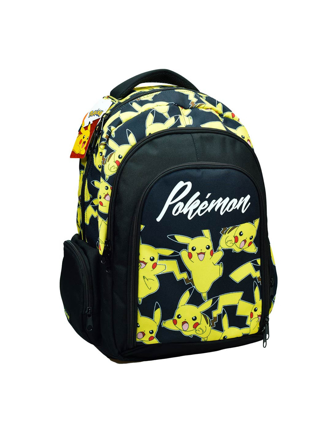 Lo zaino Poke'mon Pikachu e' l'alleato perfetto per tutti i giovani appassionati di Poke'mon che si recano alle elementari o all'universita'. Con le sue dimensioni generose di 48 cm di altezza, 30 cm di larghezza e 28 cm di profondita', questa borsa offre un'impressionante capacita' di stoccaggio per tutti i libri di testo, i quaderni e il materiale scolastico necessari. Questa borsa e' costruita con qualita' premium, progettata per resistere all'usura quotidiana. Dispone di due ampi scomparti principali con cerniere, perfetti per organizzare libri e quaderni, e di un'ulteriore tasca con cerniera per piccoli oggetti. Le due tasche laterali in rete sono ideali per contenere bottiglie d'acqua o snack, consentendo un accesso facile e veloce durante il gioco o in viaggio. L'estetica non e' da meno con questo zaino che presenta un vivace motivo di Pikachu, il Poke'mon preferito di molti bambini. La grafica colorata e l'iconico fulmine di Pikachu aggiungeranno sicuramente un tocco di divertimento e originalita' alla routine scolastica. Anche il comfort e la funzionalita' sono all'ordine del giorno: gli spallacci sono imbottiti e regolabili, garantendo una vestibilita' comoda anche quando la borsa e' piena. Lo schienale imbottito consente una migliore distribuzione del peso e fornisce un supporto extra, essenziale per la postura e il comfort dei bambini. Questo zaino e' piu' di un semplice accessorio, e' un compagno di viaggio che porta con se' lo spirito avventuroso dei Poke'mon e incoraggia l'organizzazione e l'indipendenza nei giovani scolari.