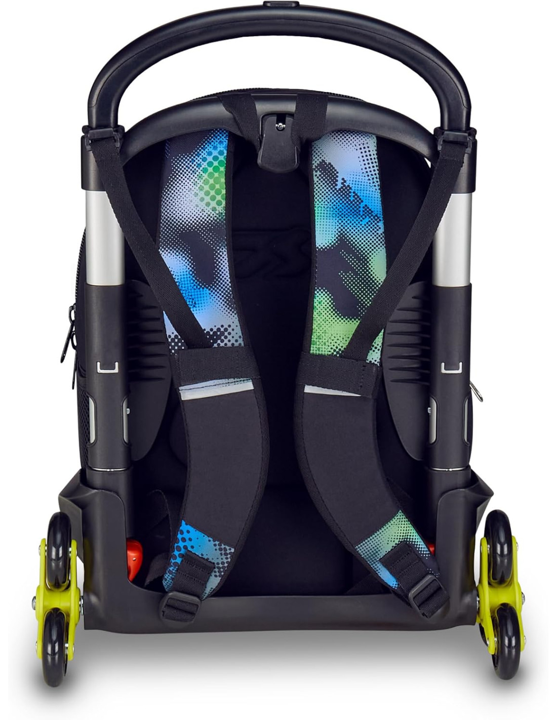 Tessuto: Scegli il Seven Trolley Scuola Flex 3 Ruote, lo zaino perfetto per le scuole medie e superiori. Con 31 litri di capacità, è progettato per offrire il massimo comfort e una versatilità unica grazie a un sistema a doppio utilizzo. Il sistema a 3 ruote da 65 mm e la maxi barra telescopica regolabile assicurano facilità di trasporto su qualsiasi superficie, comprese scale e terreni irregolari. Il Seven Trolley Flex 3 Ruote unisce design moderno, funzionalità e resistenza per accompagnarti durante le
