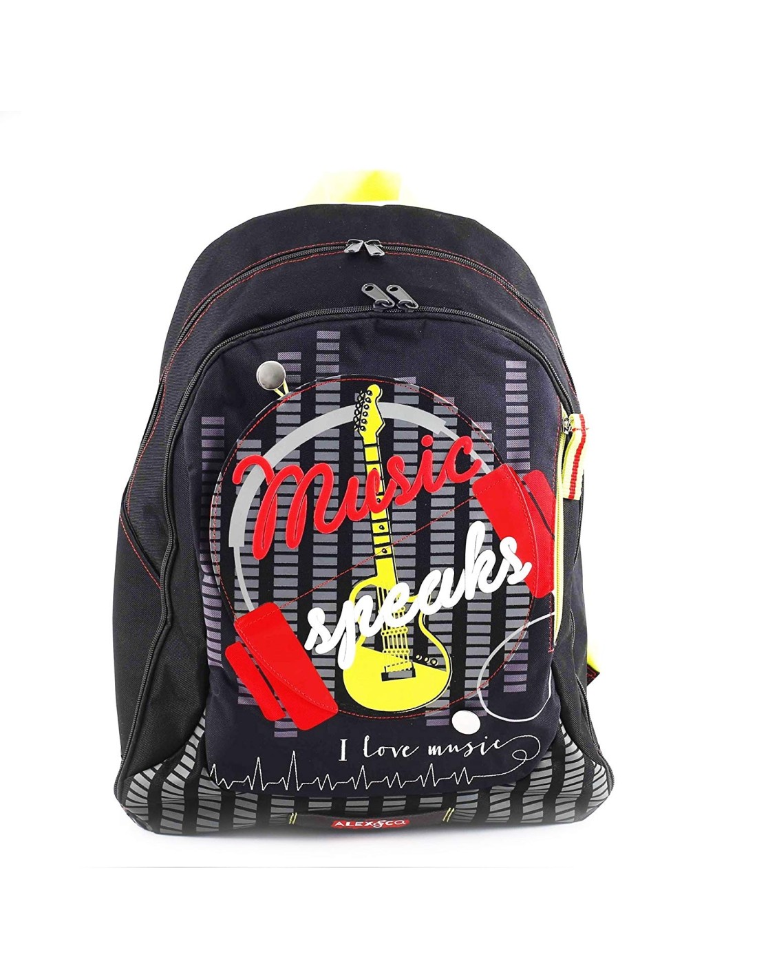 Alex and Co è la nuovissima serie televisiva Disney che racconta le avventure di un gruppo di amici al primo anno di liceo. Il protagonista è Alex, un ragazzo molto intelligente, coraggioso, vivace e con un grande senso della giustizia. Lo zaino -sviluppato con un design innovativo ed accattivante- è realizzato in tessuto con grafiche personalizzate. L'immagine posta sul fronte può essere cambiata con un semplice gesto: stampata su una porzione di tessuto removibile, può essere girata in modo da scoprire un'ulteriore foto ispirata al mondo Alex and Co. L'articolo presenta spallacci regolabili (ed imbottiti), completo di schienale ergonomico. La cartella possiede un'ampia tasca interna per riporre libri e materiale scolastico di grandi dimensioni: articolo è completo di due taschine laterali esterne in cui riporre gli oggetti utilizzati di frequente. Sul fronte sono presenti due tasche, complete di chiusura con cerniera a zip. Lo zaino è dotato di una pratica maniglia in tessuto per facilitare il trasporto a mano. Dimensioni: 30 cm (lunghezza) x 20 cm (larghezza) x 46 cm (altezza).