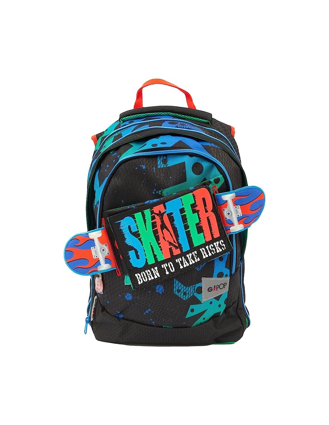 UNO ZAINO NUOVO OGNI GIORNO: Lo zaino Go Pop si contraddistingue per la fascia frontale con 3 grafiche intercambiabili e POP-UP. Le grafiche si fondono con i pattern del corpo zaino e fanno emergere storie, concetti, personaggi che danno uno stile unico alle collezioni. MASSIMO COMFORT: La forma arrotondata, lo schienale e gli spallacci imbottiti «FIT TO WEAR», aderiscono perfettamente alla schiena del bambino e rendono lo zaino ergonomico e comodo per il trasporto. go pop CARATTERISTICHE: Lo zaino è dotato di 3 scomparti con cerniera ed estensione laterale per aumentare la capacità di carico. La capacità dello zaino è di 23 litri, 35 litri nel formato esteso. Gli spallacci sono imbottiti e la maniglia è in tessuto. "UN DISEGNO UNICO E UNO STILE INCONFONDIBILE Il mondo Go Pop cresce ogni anno, cambia, si rinnova per accompagnare nel tempo i gusti dei nostri piccoli consumatori. Storie, concetti, personaggi che danno uno stile unico alle collezioni, emergono grazie all'inconfondibile fascia frontale con 3 grafiche intercambiabili e POP-UP." SCOPRI TUTTA LA LINEA GOPOP: Acquista l'intero corredo scolastico necessario per partire alla grande. Due modelli di zaino tra cui scegliere (Round Estensibile o Trolley), un astuccio triplo, una bustina e un diario giornaliero, tutto firmato Gopop!